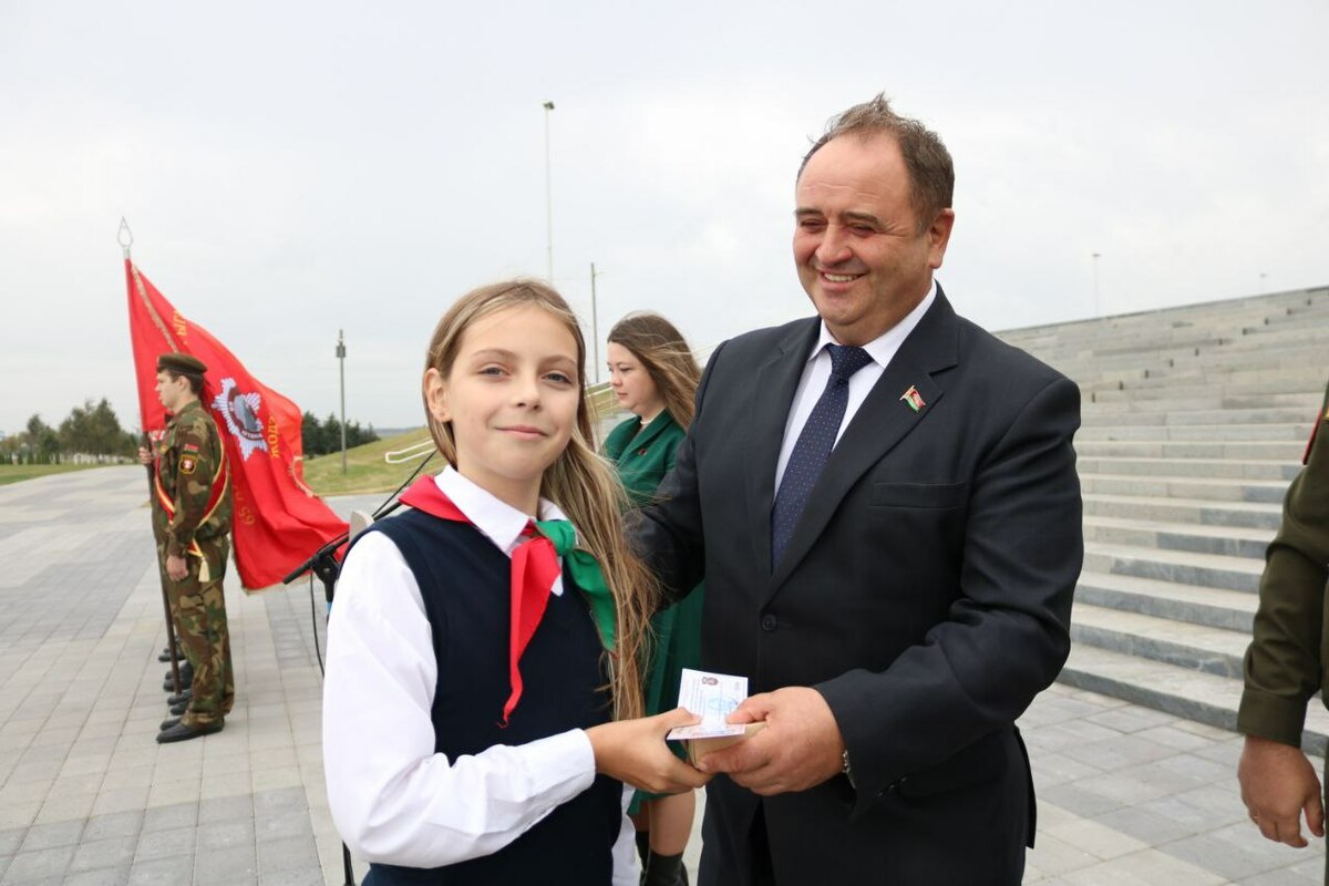16 сентября в преддверье Дня народного единства, 13 учащихся нашей гимназии стали воспитанниками военно-патриотического клуба «Волот». Учащиеся принесли торжественную клятву в знаковом месте, которое является символом истории Великой отечественной войны, на Кургане Славы. Юноши и девушки, которые сегодня вступили в военно-патриотический клуб «Волот», были выбраны не спроста. Они активно принимают участие в военно-патриотических и спортивных мероприятиях и добились хороших результатов. С поздравительным словом для учащихся выступили наши почетные гости полковник, командир 65-й автомобильной бригады, Алексей Михайлович Кукин, полковник, заместитель начальника Департамента по идеологической работе, начальник группы Департамента транспортного обеспечения Валерий Иванович Янушкевич.