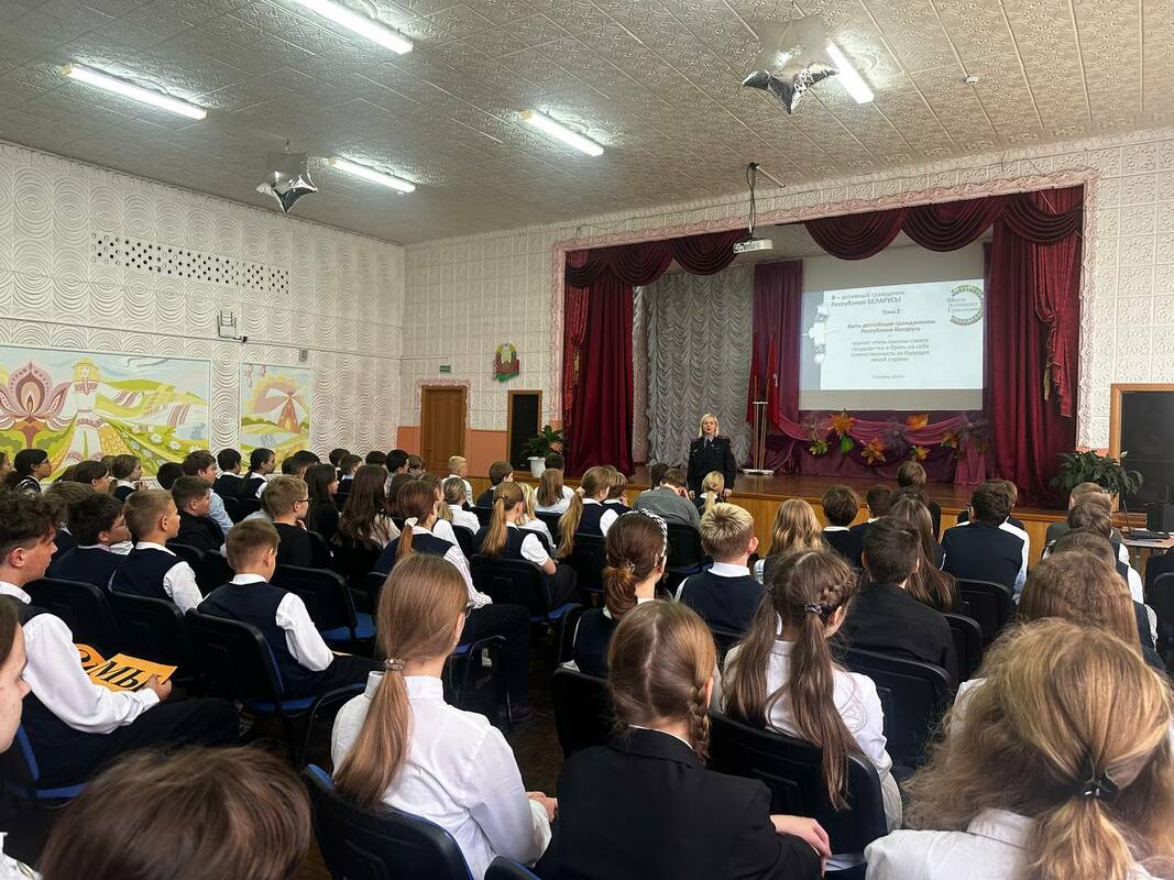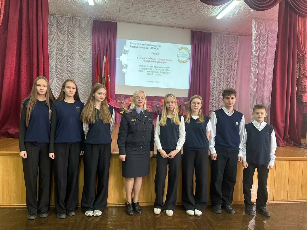 В рамках информационно-образовательного проекта "Школа Активного Гражданина" для учащихся классов нашей гимназии 23 октября 2025 года прошла диалоговая площадка по теме «Быть достойным гражданином Республики Беларусь – значит чтить законы своего государства и брать на себя ответственность за будущую судьбу своей страны».