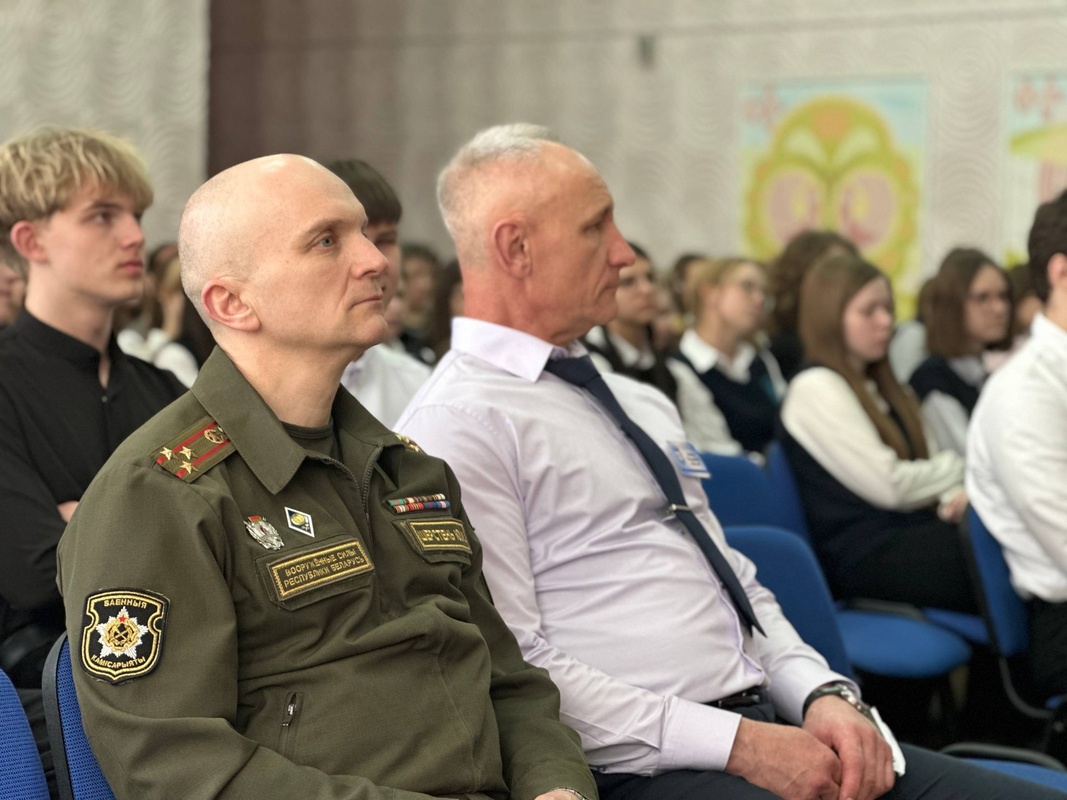 Почётным гостем мероприятия стал подполковник Шерстень Ю.М., военный комиссар Смолевичского района и г. Жодино. В ходе встречи учащиеся обсудили значение гражданского долга, патриотизма и готовности к защите Отечества. Гость рассказал о службе в Вооружённых Силах Республики Беларусь и ответил на вопросы учащихся.