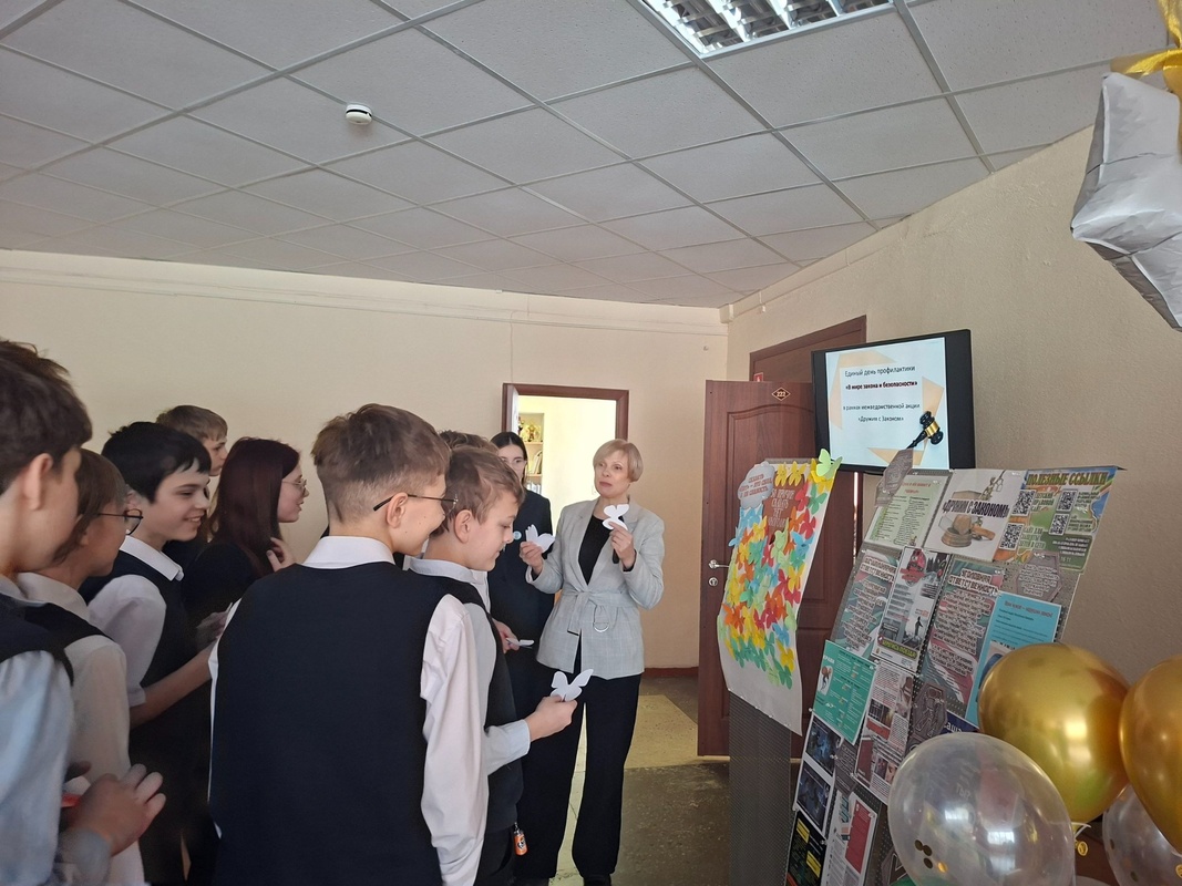19 февраля 2026 года в рамках межведомственной профилактической акции «Дружим с законом» прошел единый день профилактики "В мире закона и безопасности". Учащиеся 5-11 классов приняли участие в акции «50 причин сказать НЕТ алкоголю», направленное на формирование ответственного отношения к своему здоровью и соблюдению норм закона. Основная идея акции — помочь подросткам осознанно выбрать трезвый и безопасный образ жизни, задуматься о последствиях употребления алкоголя и определить личные причины отказа от него. Также для всех учащихся были проведены классные часы с приглашением субъектов из межведомственных структур и просмотром видеофильмов.