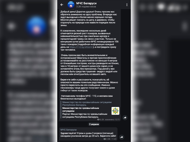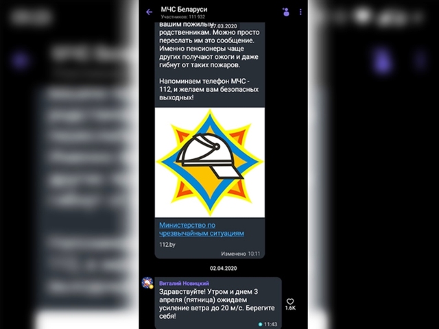 Официальным мессенджером МЧС Беларуси по праву считается Viber. Наше комьюнити здесь насчитывает (что символично) почти 112 тысяч человек. Только самые важные новости и предупреждения о неблагоприятных явлениях – обещаем, что у вас не возникнет желания нажать на «mute».